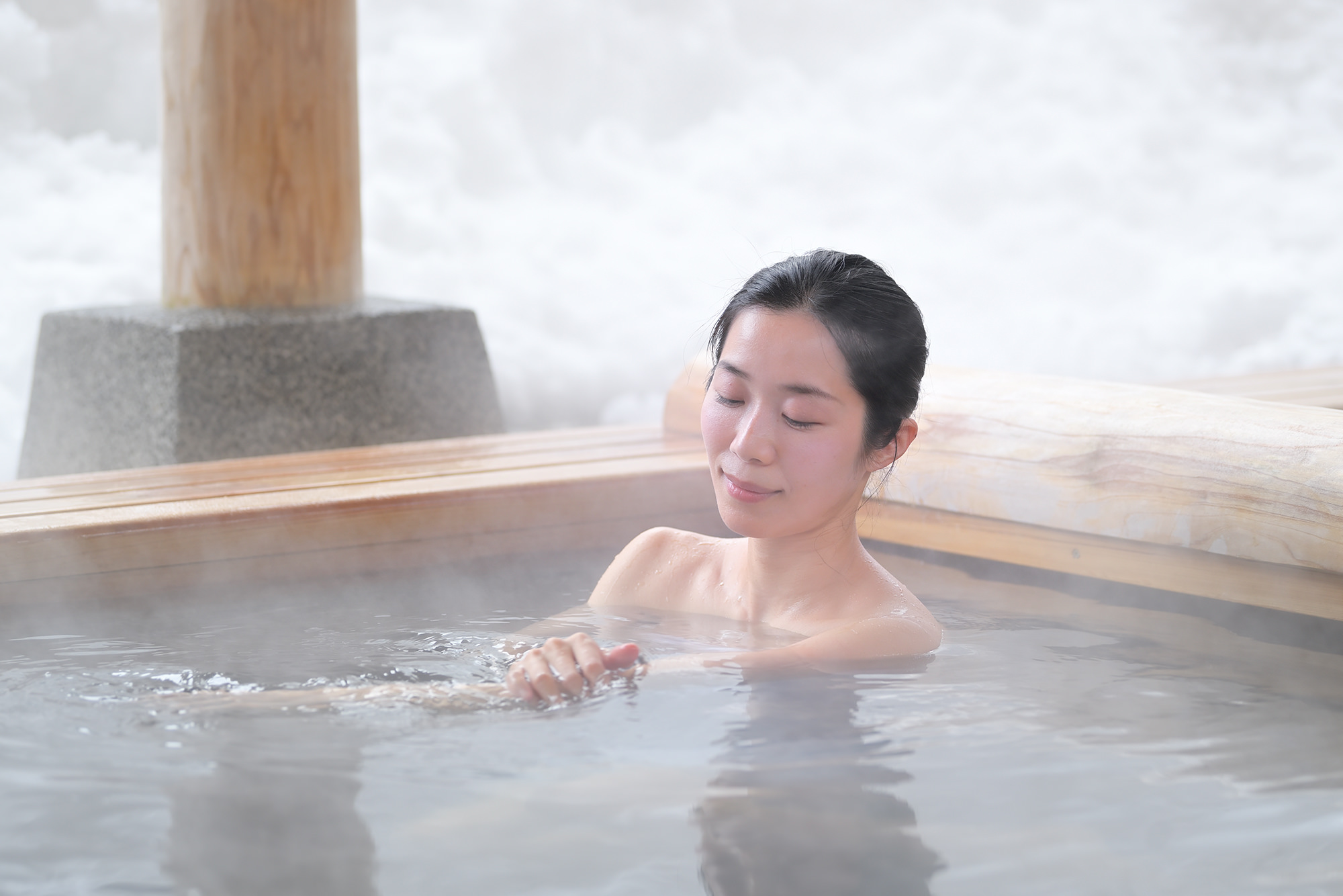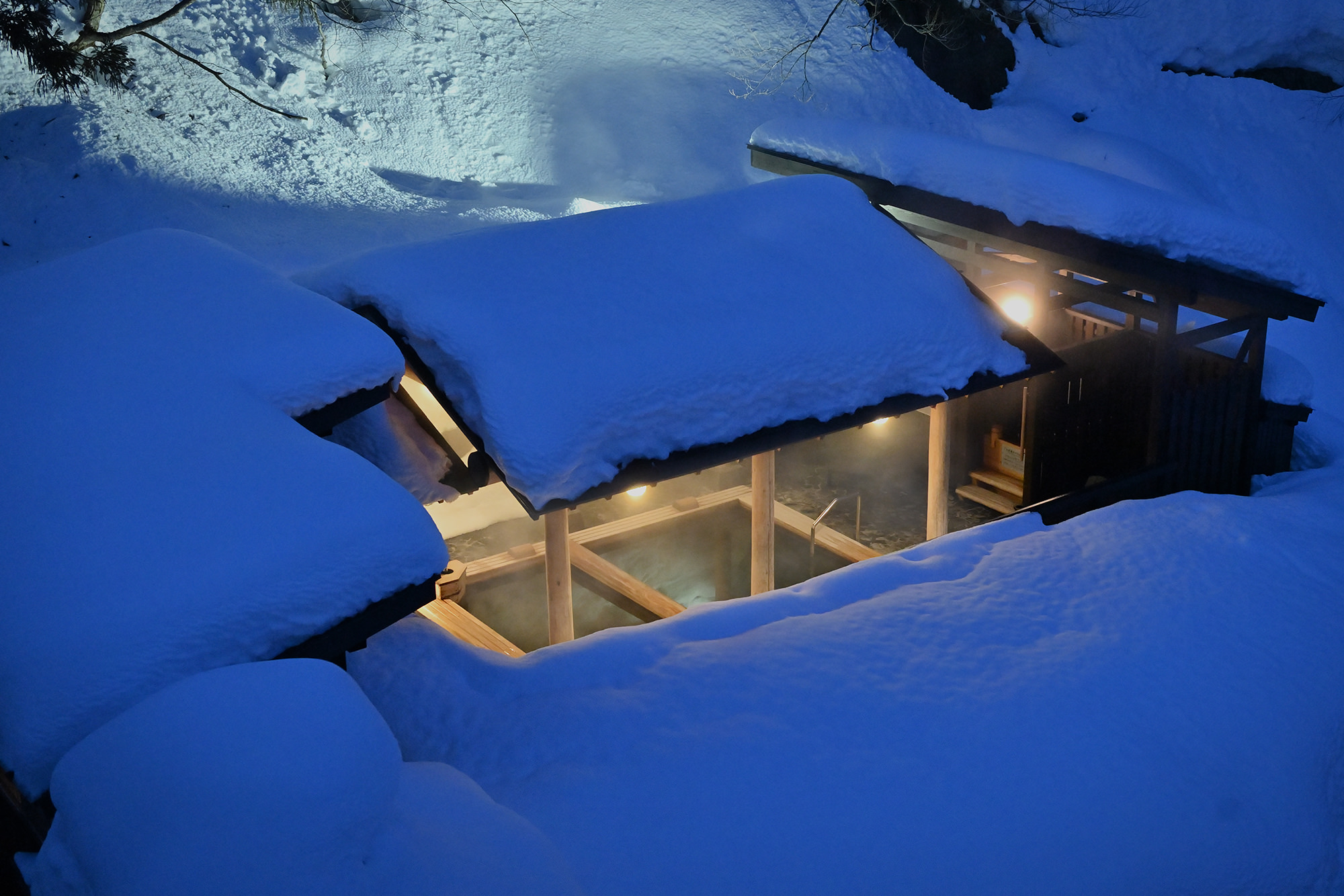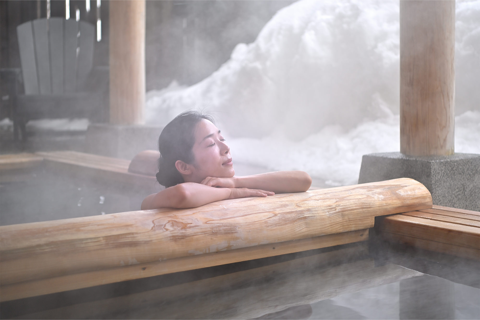 立ち上る湯煙に温かな温泉の湯。周囲が雪に覆われていることを忘れるほどですが、目線を少し上げると湯舟近くまで押し寄せている雪が、ここが紛れもない雪国であることを伝えてきます。